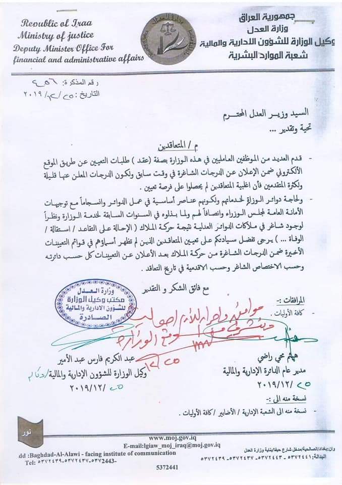 نرفق لكم نسخة من كتاب السيد مدير ادارة موظفي وزارة العدل ليبيا Facebook