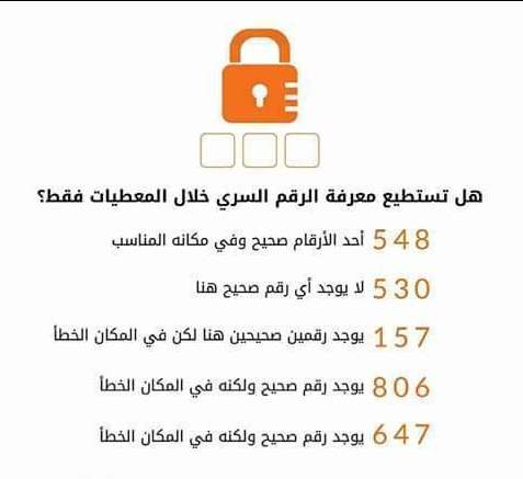 حل لغز هل تستطيع معرفة الرقم السري خلال المعطيات فقط موقع فزورة