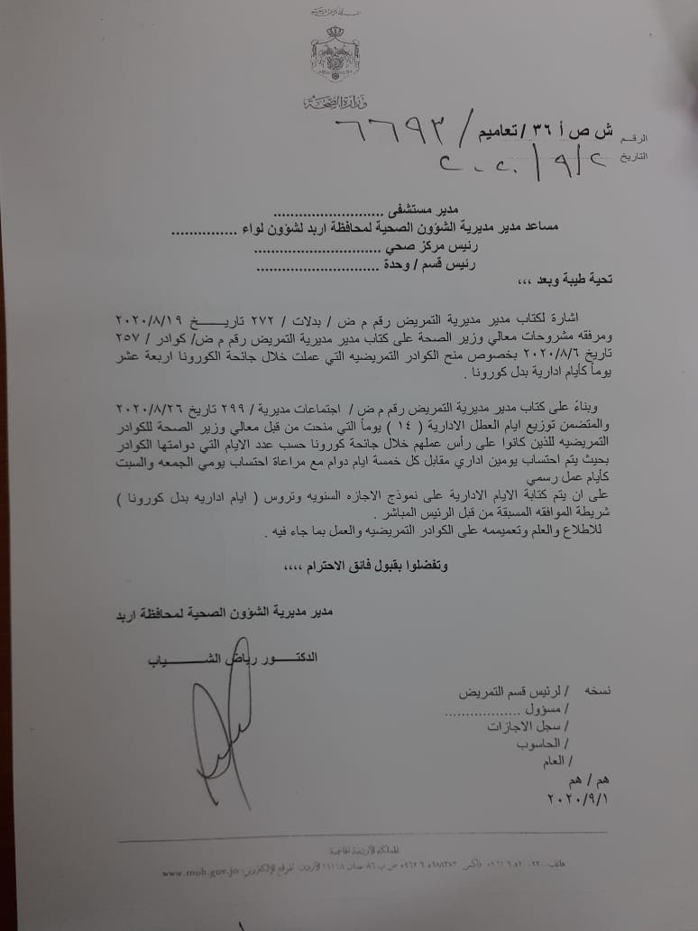 تقرير طبي مختوم من مستشفى حكومي الاردن